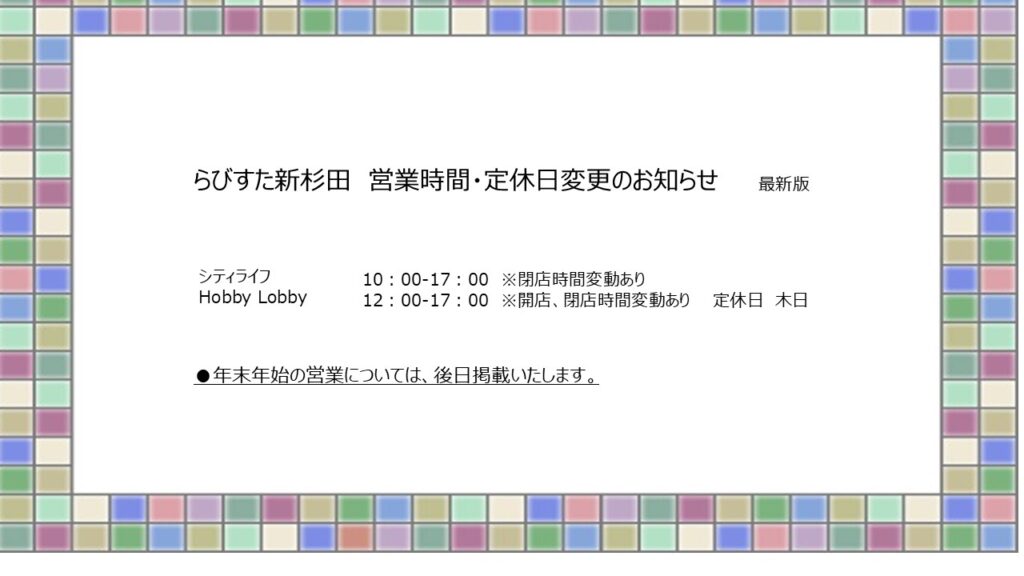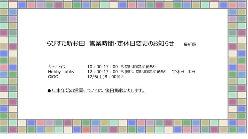 インフォメーション 2025.12.03 営業時間・定休日変更のお知らせ 2025.12.02 【オープン日変更】12月1日 富士林檎オープン 2025.11.20 【11/20更新】プレミアム付商品券2025について 2025.11.20 【11/20更新】らびすた商品券2025について 2025.11.07 12/1(月) らびすた新杉田歯科クリニック開院 2025.10.25 ハロウィンイベント 当日受付・チェックポイント・ゴール場所変更及びお菓子受取についてのお知らせ 2025.10.17 ハロウィンイベント事前予約終了 2025.10.08 \ハロウィンイベントを開催します/ 2025.09.29 【メディア掲載】海まちさんぽ+ 2025.08.09 \夏まつりを開催します/ MORE