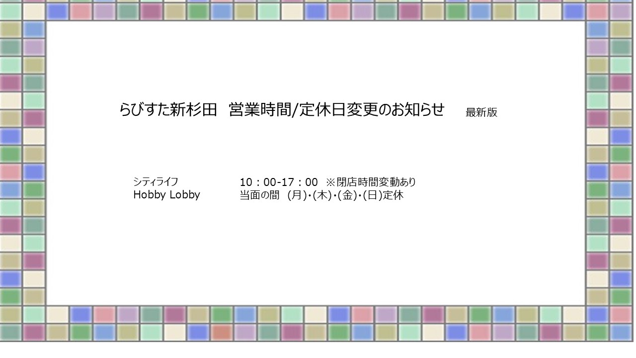 インフォメーション 2026.02.04 営業時間/定休日変更のお知らせ 2026.01.21 ウィンターキャンペーン当選者発表 2026.01.17 【1/17更新】らびすた商品券2025について 2025.12.26 \新春イベントを開催します/ 2025.12.02 【オープン日変更】12月1日 富士林檎オープン 2025.11.20 【11/20更新】プレミアム付商品券2025について 2025.11.07 12/1(月) らびすた新杉田歯科クリニック開院 2025.10.25 ハロウィンイベント 当日受付・チェックポイント・ゴール場所変更及びお菓子受取についてのお知らせ 2025.10.17 ハロウィンイベント事前予約終了 2025.10.08 \ハロウィンイベントを開催します/ MORE