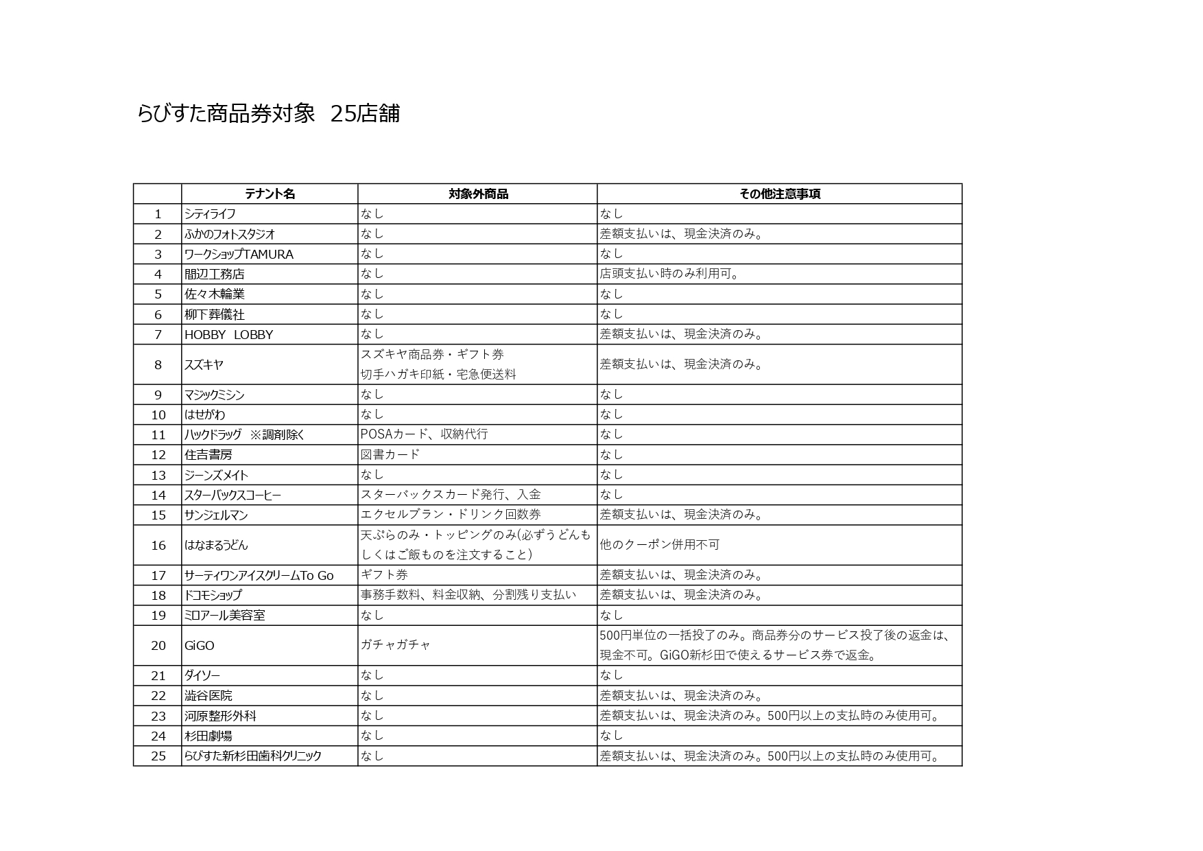 インフォメーション 2025.11.17 【11/17更新】らびすた商品券2025について 公式HP「イベントページ」に、ポスター画像を掲載しております。 また、下記一覧に掲載されていない内容につきましては、お手数ですが、各店舗に直接ご確認いただきますようお願い申し上げます。 インフォメーション一覧に戻る