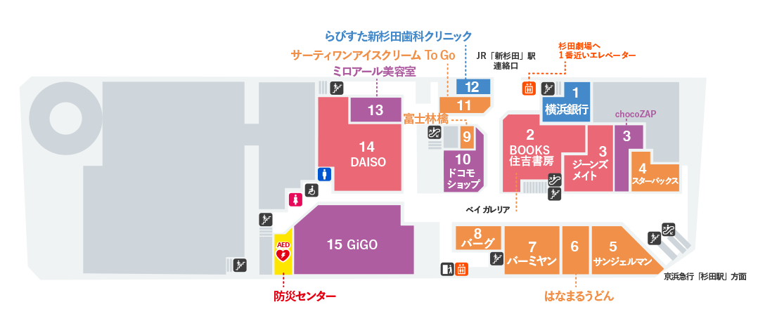 | 12らびすた新杉田歯科クリニック | 銀行/病院 | 歯科 |