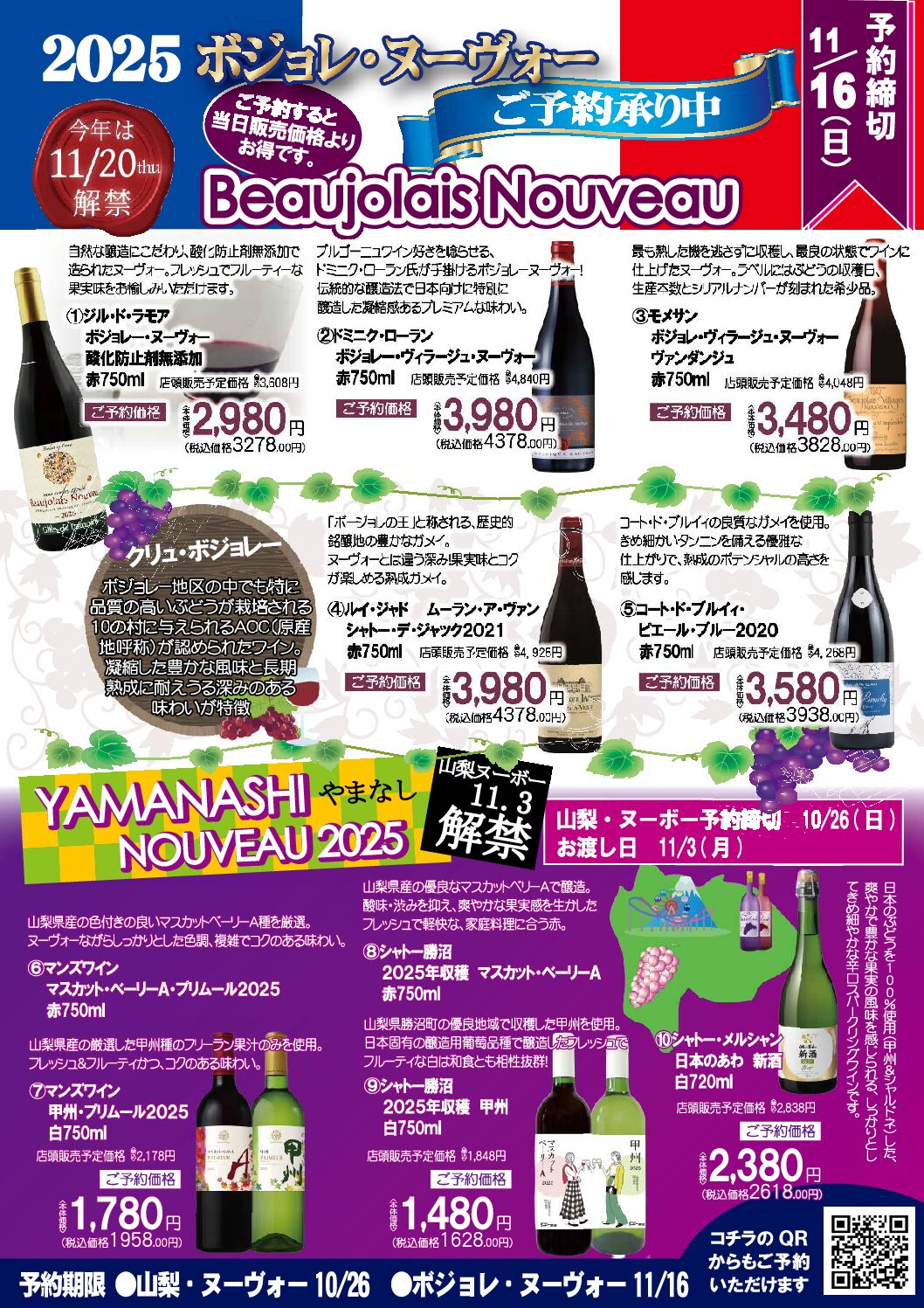 こんにちは~スズキヤの中島です。 2025年11月20日 ボジョレー・ヌーヴォー解禁! ワイン&チーズおつまみで乾杯しましょう。 新酒ならでは、フルーティーでベリー系の果実味が いっぱいの軽やかな味わい…